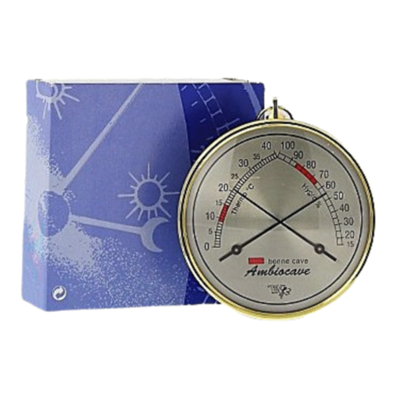 Thermomètre et hygromètre. Mesure la tempĂ©rature et le taux d’hygromĂ©trie dans la cave.