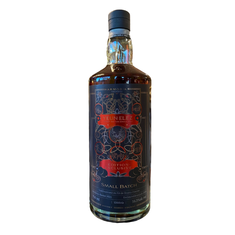 Issu d’une double distillation d’orge maltée tourbée et vielli en fût de Sherry Oloroso
