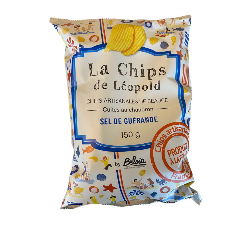 Triées à la main, tranchées, cuites au chaudron en petites quantités puis légèrement salées au sel de Guérande.