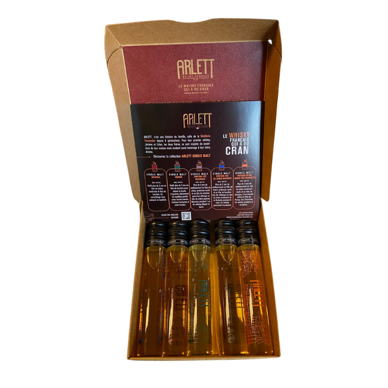 C’est la Distillerie Artisanale Tessendier, qui produit la marque Arlette, originaire du Tarn. Fondée en 2007, c’est l’une des premières distilleries de whisky en France. Le nom « Arlett » fait honneur à la grand- mère de la famille. Les whisky Arlett prônent le local avec leurs céréales et distillent dans des alambics traditionnels en cuivre, avec un affinage en fût de chêne Français et Américain.