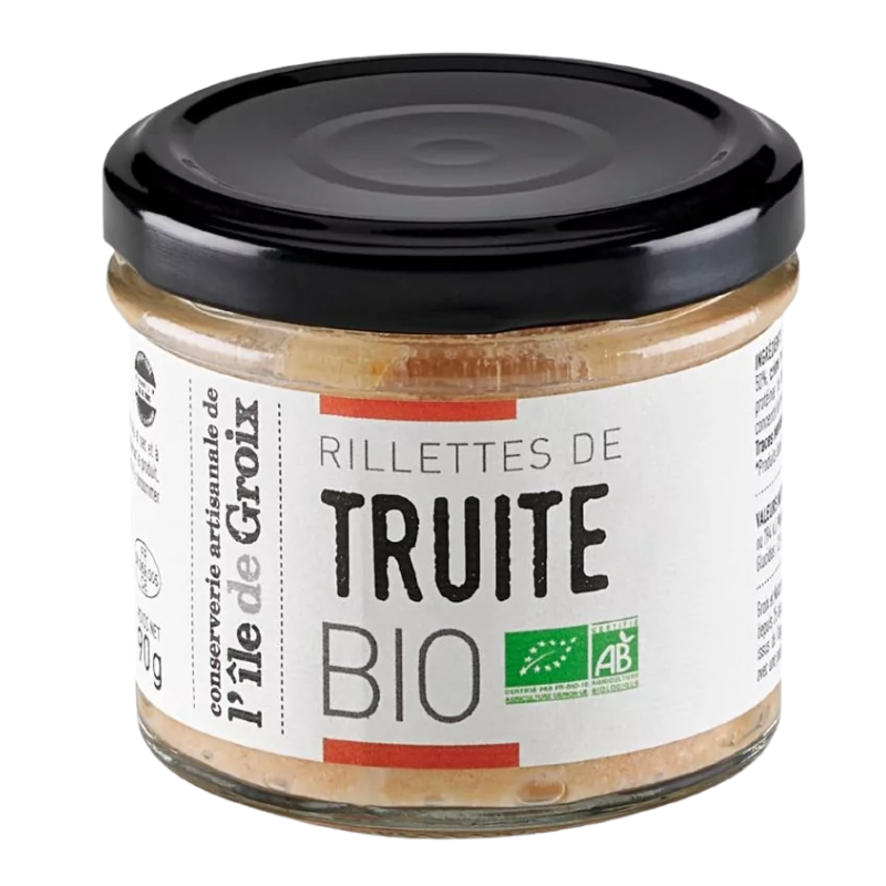 Savoureuses rillettes cuisinées à partir de truites issues de l’agriculture biologique, d’origine bretonne. Échalotes et pointe de poivre vert.