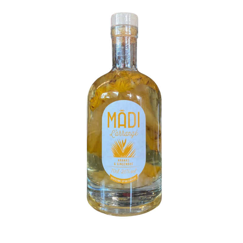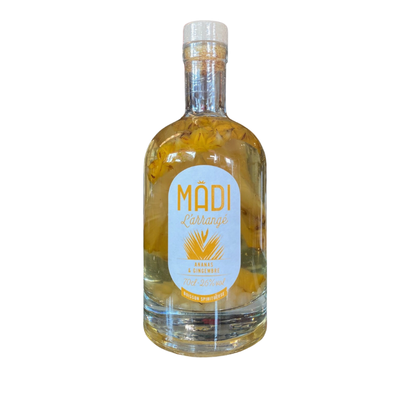 Rhum AOC Martinique dans lequel macèrent de l’ananas et du gingembre.