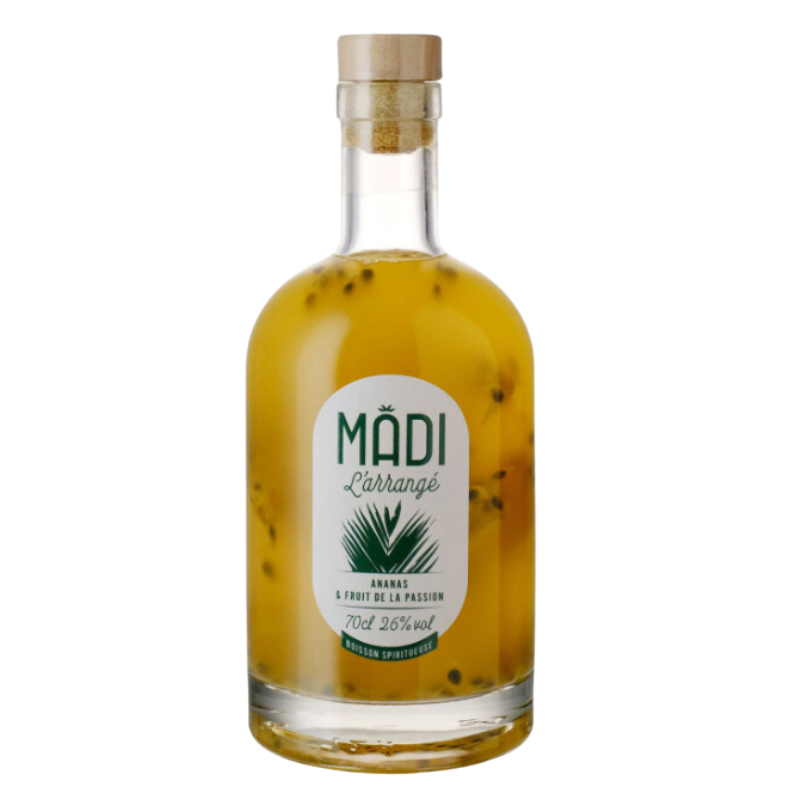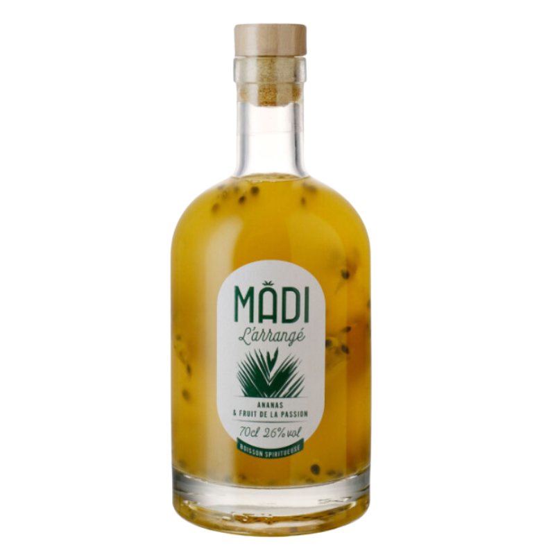 Rhum AOC Martinique dans lequel macèrent des fruits de la passion et de l’ananas.
