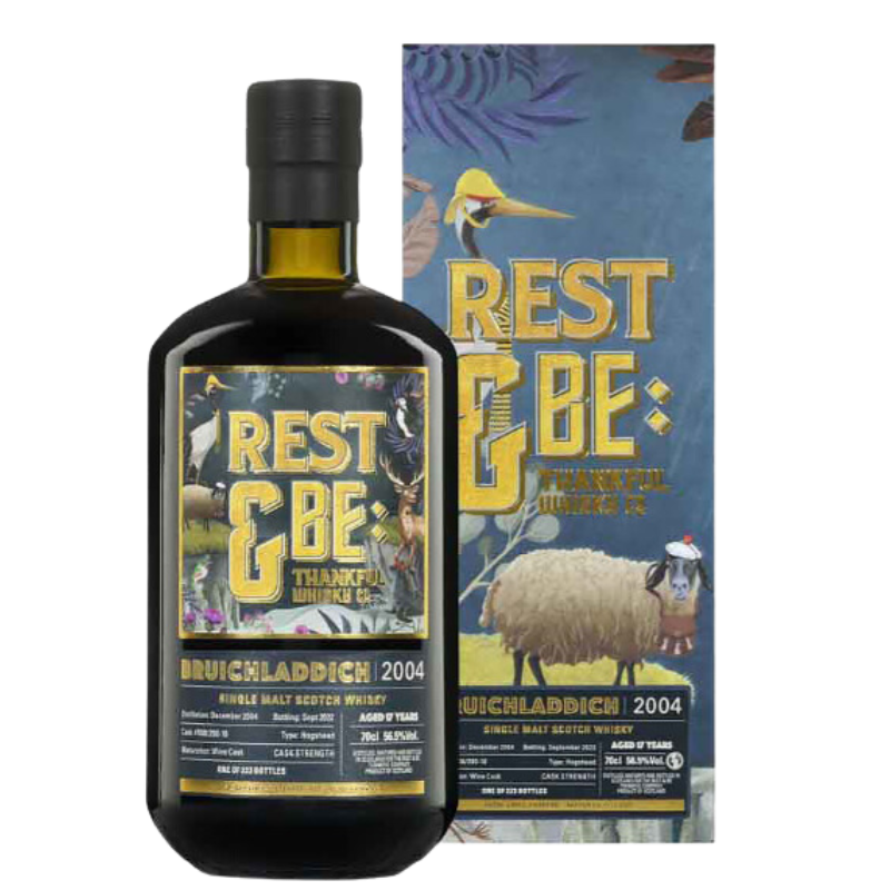 Ce single cask signĂ© Rest & Be Thankful (Fox Fitzgerald Brands) provient de la cĂ©lèbre distillerie Bruichladdich situĂ© sur l’Ă®le d’Islay en Ecosse. Un très beau whisky distillĂ© le 1er dĂ©cembre 2004 et ensuite vieilli pendant 17 ans en ex-fĂ»t de vin. Toujours embouteillĂ© sans colorant, sans filtration Ă froid et brut de fĂ»t.