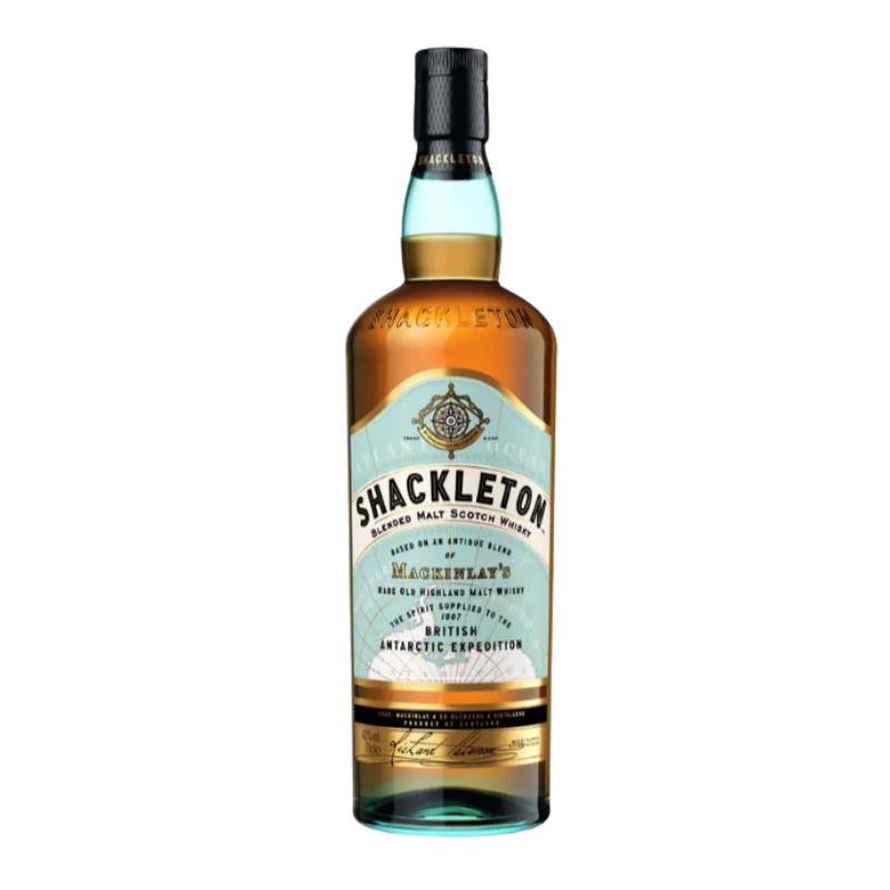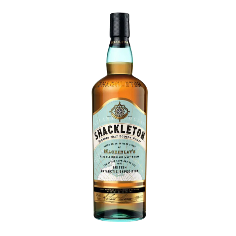 Le whisky Shackleton est inspiré de Sir Ernest Shackleton, le célèbre explorateur Britannique, qui en 1907 avait emporté du whisky Mackinlay’s lors de son expédition en Antartique. Les caisses de whisky ont été retrouvé en 2007. 100 ans après, ces bouteilles deviennent un modèle pour recréer un whisky rendant hommage à cette aventure.
